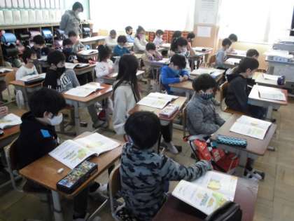 音楽を聴いてどんな様子が思い浮かんできたか発表しました。歌のタイトルに「二月」とあるので「冬っぽい感じがする」とか「優しい音から春っぽい感じがする」といった意見が聞かれました。