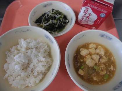 子供たちから,「『とうふの四川風』は,少しピリ辛で,とっても美味しかったです。『ほうれん草ともやしのいためナムル』は,もやしがシャキシャキしていて,少し酸っぱくて美味しかったです。」と,感想をくれました。