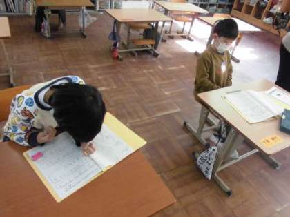 今日は持久走記録会がありました。走る前にどんなことをがんばるか目標を立てていました。今日は走り終わった後,目標は達成できたか,どんなことが心に残ったか,記録していました。