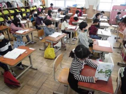 国語の時間には,日づけの読み方を学習しました。一日と書いて「ついたち」,十日と書いて「とおか」と読むことなど,リズムよく音読して覚えるようにしました。