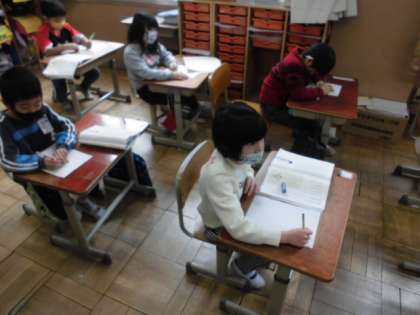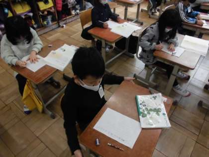 普段は離れた所に住んでいるおじいさんやおばあさん,同じおうちで暮らしている家族,いつも一緒に遊んでくれるお友達などへ自分が知らせたいことをお手紙に書きました。「誰に書くの?」と聞くと,少し照れくさそうにしている様子がうかがえました。受け取った相手の様子を思い浮かべながら,楽しそうに書いていました。
