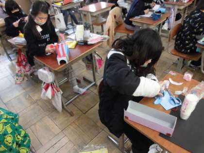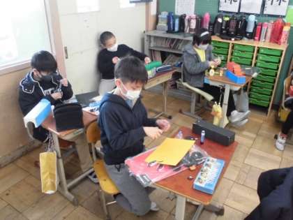 ドリームカーの土台部分ができたので,今日は,部品を作ったり組み立てたりしました。どんな車にするのか自分の中にあるイメージを実現できるように粘り強く作っていました。