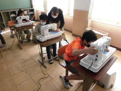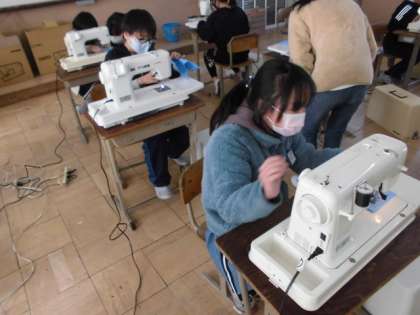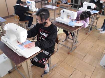 今日は2組が家庭科の時間にミシンを使う練習をしました。針を下ろしてから布を押さえる手順を忘れたり動かすことに不安を感じたりしていたので,なかなかうまくできませんでした。思い切ってミシンを進めてみると,思った以上にきれいに縫えました。