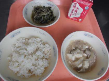 子供たちから,「『豚肉ととうふのくず煮』は,玉ねぎもやわらかくて,とうふが美味しかったです。また,食べたいです。『ほうれん草ともやしのごま煮』は,シャキシャキした食感が好みでした。ごまの香りもして,香ばしくて美味しかったです。」と,感想をくれました。