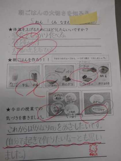 5−1で「朝ごはんの大切さについて知ろう」をテーマに学習しました。