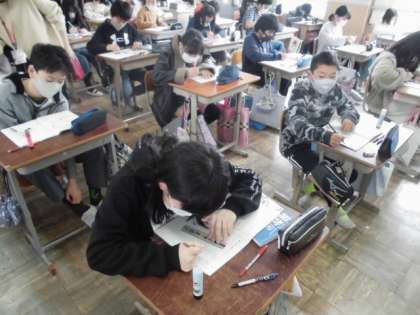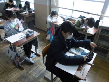 先日,角柱の辺や面の数について調べましたが,今日は「見取図」を描きました。立体的に表現するため,見えていない辺は点線で描きました。辺の長さや向きに気をつけながら,ノートに立体的な図形を描いていました。