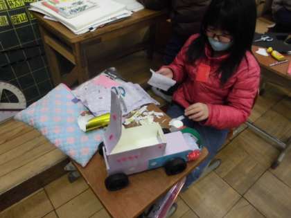 自分が考えた夢の車「ドリームカー」がもうすぐ完成します。たくさんの飾りをつけたり考えた機能を作ったりしてきました。ようやく全体像が見えてきて最後の仕上げに入っています。