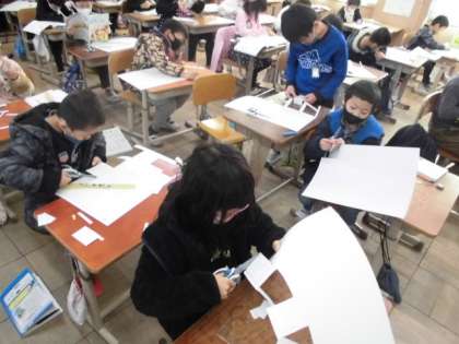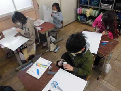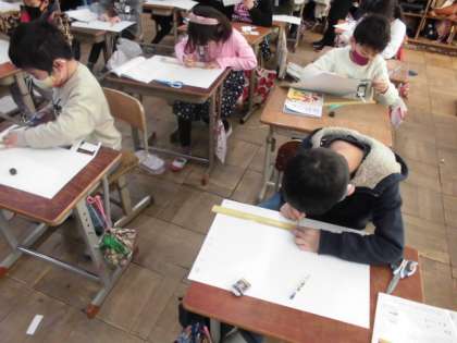 先日の算数では,頂点や辺,面の数について調べました。今日は,実際に箱を作ってみました。面の数は全部で6つあることを確認した後,向かい合う面の形を同じにすることに気をつけながら作っていました。