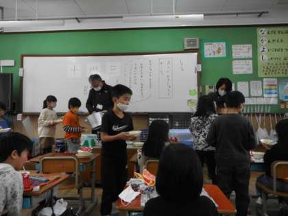 1年生の給食時間の様子です。