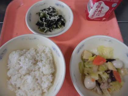 子供たちから,「『うずら卵とキャベツのいため煮』は,うずら卵がやわらかくて,キャベツやたけのこがシャキシャキしていて,とっても美味しかったです。『切干大根のいためナムル』は,ほうれん草の甘みと切干大根が,さっぱりした酸味があって,美味しかったです。」と,感想をくれました。