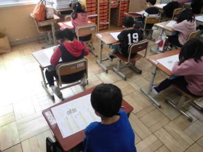 今日は,国語のテストをしました。これまで学習してきたことをもとにしながら,問題文をよく読んで答えていました。