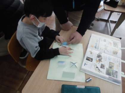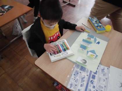 図工の時間には,「まどをひらいて」という工作をしました。窓を開くと何が見えるでしょう?こんな窓だったら楽しいなと思うことを描きました。動物が好きなようでどの窓にも動物がいるようでした。