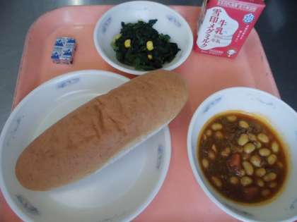 子供たちから,「『チリコンカーン』は,大豆のコクやうま味があって,ミンチ肉も入っていて,カレー味が美味しくてよかったです。『ほうれん草のソテー』は,ほうれん草とコーンの甘みがあって,とっても美味しかったです。」と,感想をくれました。