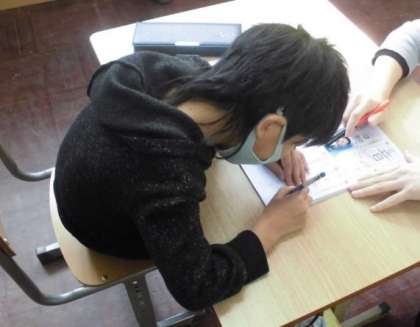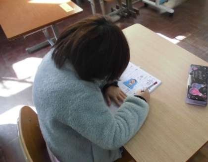 今日の国語では,漢字の学習をしました。「音」という漢字について書き順や読み方などを確認した後,練習しました。