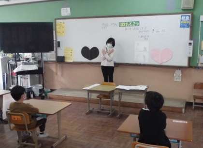 今日の道徳の時間には,良いことなのか良くないことなのか考えました。朝,学校へ来た時「おはようございます。」と言ってあいさつをします。帰りにも「さようなら。」とあいさつをします。あいさつは相手との会話のきっかけにもなるので,いいことだと考えていました。
