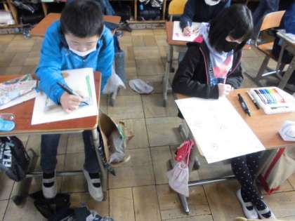 3月に入り,校舎内には6年生の卒業をお祝いする言葉が飾られています。今日は,6年生を送る会の準備をしました。みんなで歌を歌うことはできませんが,1人ずつ言葉を画用紙に書いて気持ちを伝えようとしていました。