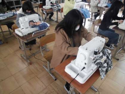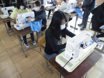 今日の家庭科では,ポケットをエプロンに縫い付けました。ミシンの数に限りがあるので,待っている間にポケットをまち針で固定したり飾りを切り取ったりしました。順番が回ってくると,慎重に方向を変えたり返し縫いをしたりしていました。