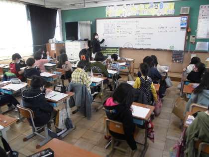 算数の時間には,ある目的地について,どのように説明すれば伝わるか考えました。1マスが100mなのですが,マス目の数だけではたどり着きません。方角も合わせて順序よく伝えることで目的地に着けることが分かりました。