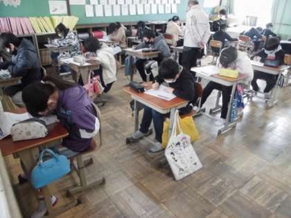 算数の時間には,学年末テストに取り組みました。学習してきたことを思い出しながら,問題を解いていました。できた人は,もう一度見直していました。