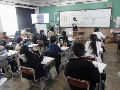 これまで自分が興味をもった仕事について調べてきました。今日は,まとめたことをみんなに伝えました。また,友達の発表を聞いて,気になったことや新たな発見など「働く」ことについて考えました。