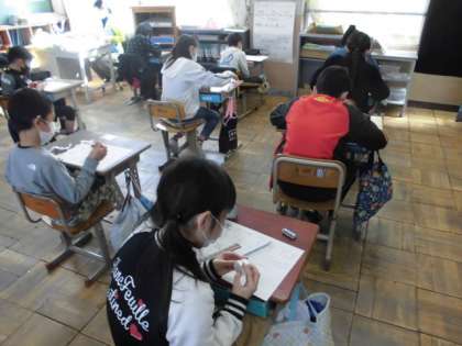 算数の時間には,直方体と立方体の学習をプリントでおさらいしました。平行や垂直の関係にある面を見つけたり展開図を描いたりしました。テストに向けて,いい準備ができました。