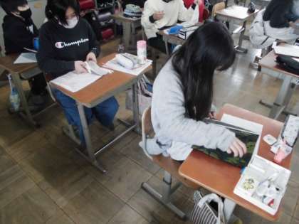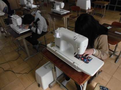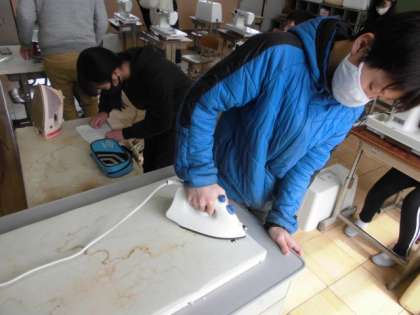 家庭科の時間には,マスクを作りました。布を裁ち,折りたたんで大きさを決めます。大きさが決まったら,ミシンで縫いました。最後にアイロンをかけて完成です。小学校での家庭科の学習のまとめとして,できるようになったことを振り返っていました。