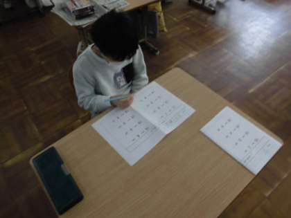 算数の時間には,それぞれの課題プリントに取り組みました。繰り下がりのある計算に苦労する場面もありましたが,粘り強く取り組んでいました。