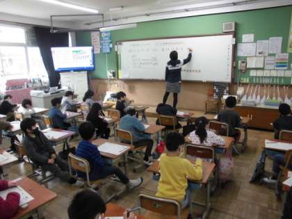 算数の時間には,問題文を読んでたし算なのかひき算なのか考えました。「始めに6人遊んでいて,そこに7人来たということは増えるからたし算になる」という理由も考えて「6+7」の式を立てていました。