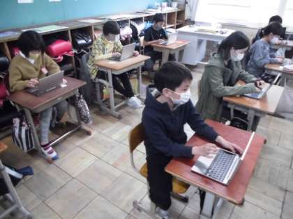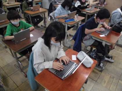 子ども達は興味をもって取り組んでいるので,前の時間に学習した方法を活かして自分でログインすることができていました。その後,カメラ機能で写真を撮ったりタイピングに挑戦したりしました。できた人は,より難易度の高いタイピングに挑戦していました。