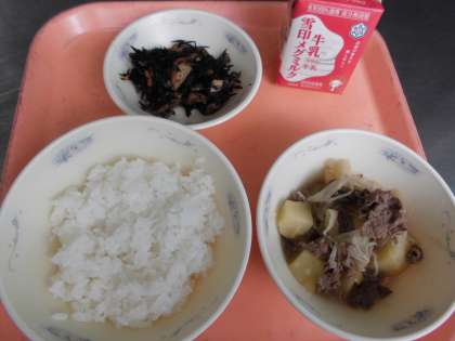 子供たちから,「『肉じゃが』は,和牛がとっても柔らかくておいしかったです。『ひじきの煮つけ』は,ひじきと人参のいろどりがよく油揚げも入っていて,とても美味しかったです。」と,感想をくれました。