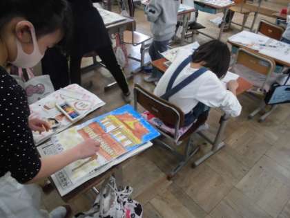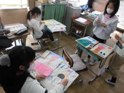 ありすの小径に飾るあんどんの絵ももうすぐ完成です。春,学校,京都など自分でテーマを決めて,絵の具で丁寧に描いていました。