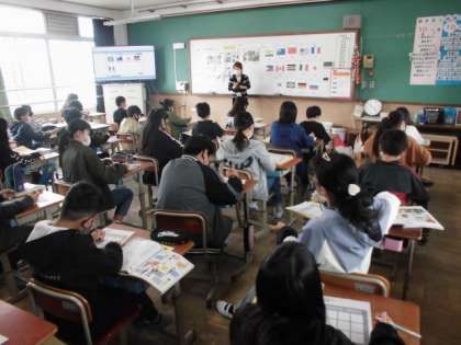 自分のことを紹介するためには,どんなことを言えばいいのか学習しました。世界のいろんな国の人と出会った場合,出身地や得意なことも伝えるといいことが分かりました。学習の最後には,国名ビンゴを通して,国の言い方を覚えました。