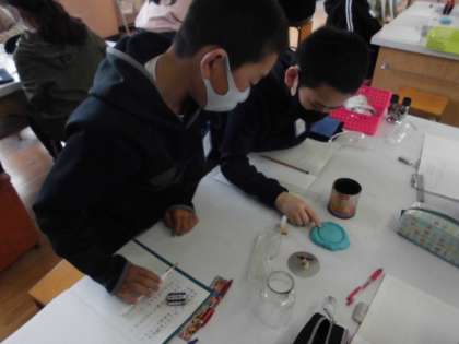 ビンの中でろうそくを燃やし続けるには,どうしたらいいか考えました。空気が関係していると予想し,ビンの底の部分も開けておくことにしました。