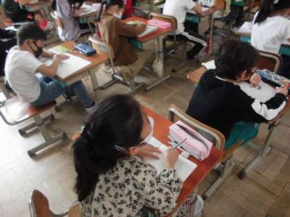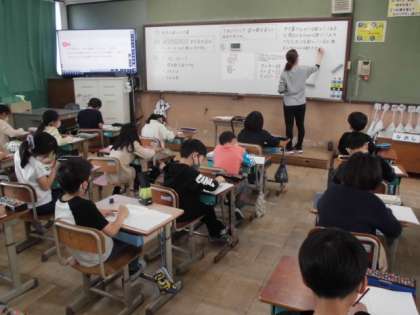 2年生の時にがんばって覚えた九九を使って学習しました。九九の表で☆印がついているところを求めるためにはどうすればいいか考えました。かける数が増えたり減ったりした時どうなるのだったか,九九のきまりを思い出していました。