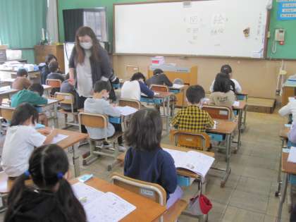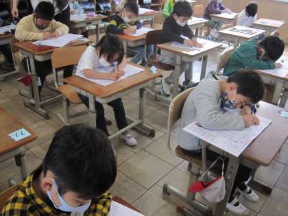 みんな,ゆっくり丁寧に形に気を付けてなぞったり,書き始める線の長さバランスに気を付けて書いたりしています。