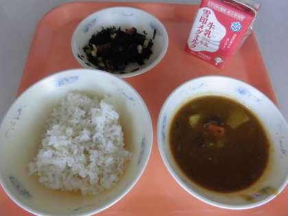 子供たちから,「『カレー』は,じゃがいもがやわらかくて,スパイスもあってとっても美味しかったです。『ひじきのソテー』は,色とりどりの豆がはいっていて,ひじきと一緒に食べたら,美味しかったです。」と,感想をくれました。