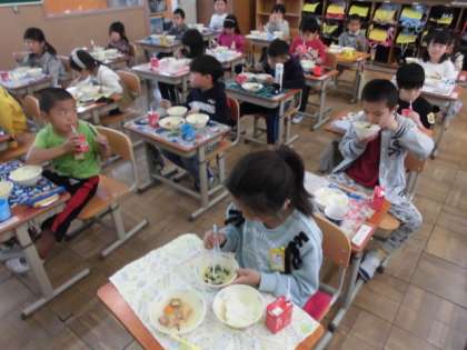 今日の給食では,「なまぶし」が出ました。1年生にとって毎日が初めての献立です。今日の「なまぶし」も初めて食べる人がいるのではと思いますが,みんな「美味しい」といって食べていました。