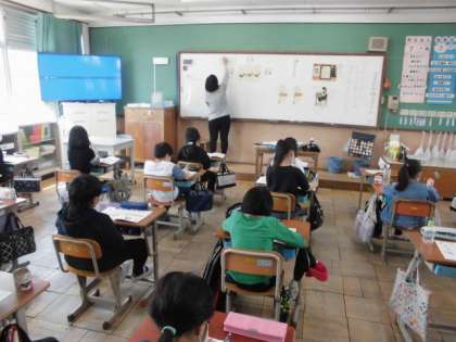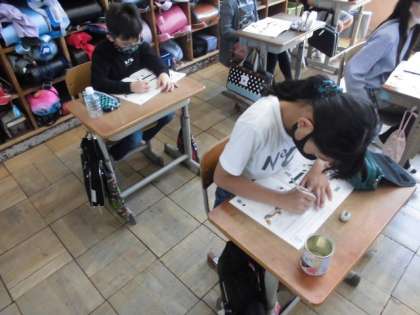 書写の時間には,習字道具を使うことがあります。今日は,習字道具の使い方や姿勢,筆の運び方などを確かめました。どんな姿勢がよいのか,硯の置く場所はどこか,筆先はいつもどこを向いているかなど確かめることができました。