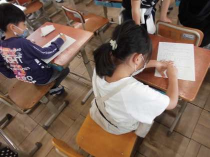 毎年,2年生は1年生を連れて学校の中を案内します。1年間過ごしたので,学校のどこにどんな教室があるか知っています。今日は,1年生にどの教室へ連れて行ってあげたいか,どんなものを見せてあげたいか,考えてから意見を出し合いました。まだ,学習で使ったことのない教室もあるので,2年生も探検に行くことを楽しみにしていました。