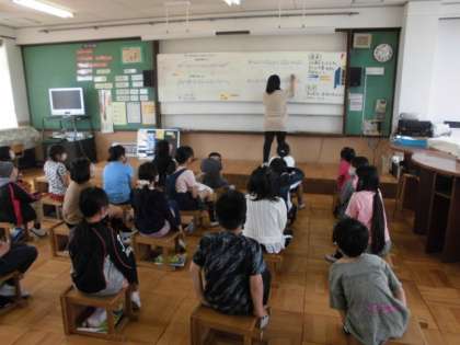 音楽の時間には,曲を聞いた時に受ける印象のことを「曲想」といい,音の高低や長短の変化のことを「旋律」という用語を学習しました。教材にある「花束をあなたに」という曲の最後の音符に着目し,3拍のばすことを確認しました。楽譜を見ながら曲を聴くと,いろんなことが分かるんだなと感じていました。