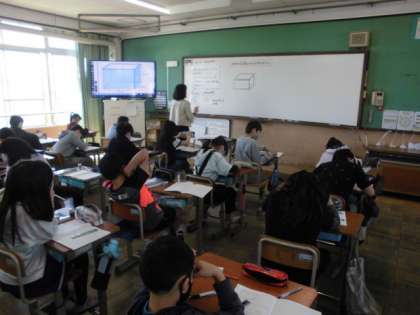 日常生活でも水槽を見かけたことはあると思います。教室前や理科室前にも大きな水槽があります。今日は,水槽に水がどのくらい入るのか考えました。直方体や立方体の体積を求める公式を生かして,容積を求めるようにしたいのですが,水槽に厚みがあるのでどうすればいいか,悩んでいました。
