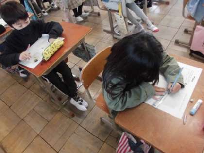 目盛りの幅がちがう2つの折れ線グラフからでは,変化の様子を判断できません。そこで,同じグラフ用紙に書いてみることにしました。すると,変化の様子がそれほど急ではないと分かりました。