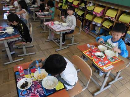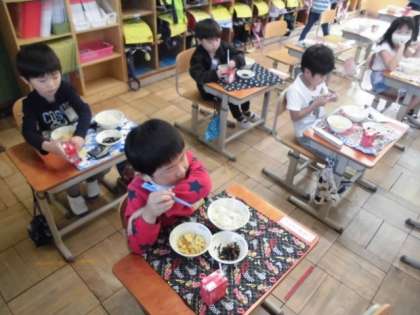 小学校の給食には,いろんな食材が使われています。今日は,「ひじき」が出ました。朝から給食調理員さんが炊いてくださったので,美味しくいただけました。毎日,「おいしい」と言いながら食べてくれるので,うれしいです。