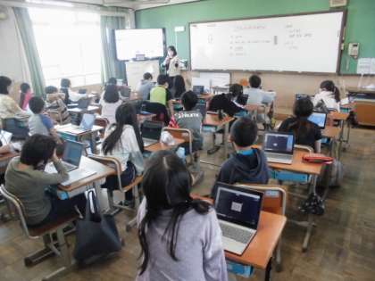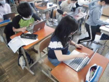 隣のクラスでは,ロイロノートを使ってみました。ふせんに自分の名前を書いて提出する方法を知りました。やり方が分かると,次は,アンケートに答えたりして操作に慣れるようにしていました。