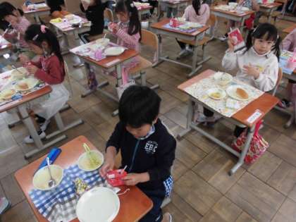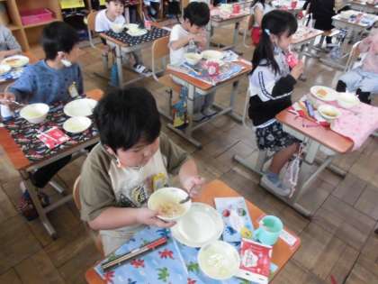 毎週水曜日はパンが出ることが多いです。今日の給食にもパンが出ました。キャベツのクリーム煮と一緒に美味しそうに食べていました。おかわりをした人もいました。
