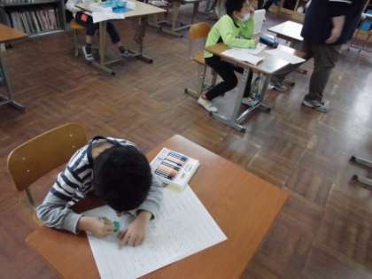 「うんとこしょ どっこいしょ まだまだかぶは ぬけません」今日の国語では,大きなかぶのお話を試写しました。全部ひらがなで書くのではなく,自分が習っている漢字を使うようにしました。難しい漢字にも挑戦していました。文章に使うことで漢字を覚えていけるといいですね。