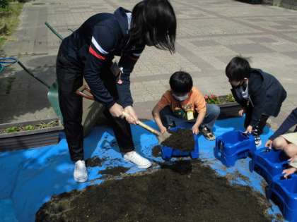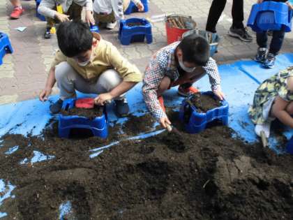 今日は,あさがおのたねを植えました。自分の植木鉢に土を入れてから,穴をあけてたねを植えました。前の時間に学習したことを思い出しながらできました。さぁこれから水やりです。愛情を込めて自分のあさがおを育ててほしいと思います。