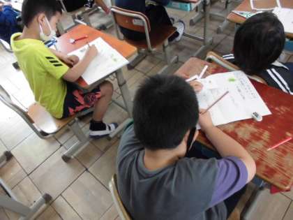 国語の時間には,教科書を読みながら順序を表す言葉を探しました。「春になると」「二,三日たつと」など時間が経ったことが分かる言葉を手掛かりにしていました。見つけた言葉と挿絵を結び付けてノートに整理しました。