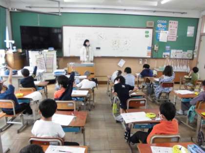算数の時間には,これまで学習してきた「時こくと時間」についておさらいをしました。1時間は60分であることや長針が1周すると短針の数字が1つ進むことなど思い出しながら問題に取り組んでいました。