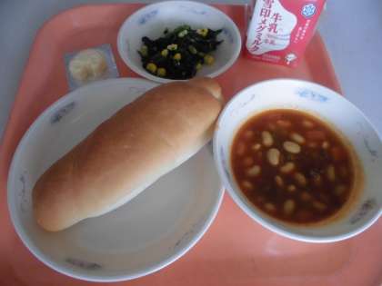 子供たちから,「『大豆と牛肉のトマト煮』は,牛肉と大豆がトマトの味がして,とっても美味しかったです。『ほうれん草のソテー』は,ほうれん草の緑色とコーンの黄色がきれいで,コーンの甘みも美味しかったです。」と,感想をくれました。
